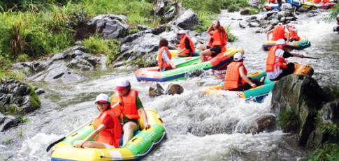 炎熱夏季,戶外漂流是消暑首選。乘著皮筏順流而下,穿梭在蜿蜒流動的河中,陽光普照,四面青山環(huán)繞,漂流其間,迎面而來的涼風(fēng)與水珠沖刷掉了夏日的酷熱。刺激的漂流也似乎喚起了大家尋樂的童心,河道中彼此你追我趕,一旦相撞少不了要一場戲水激戰(zhàn)。飛濺的河水浸透了衣服,大家卻沉浸在快樂里。
